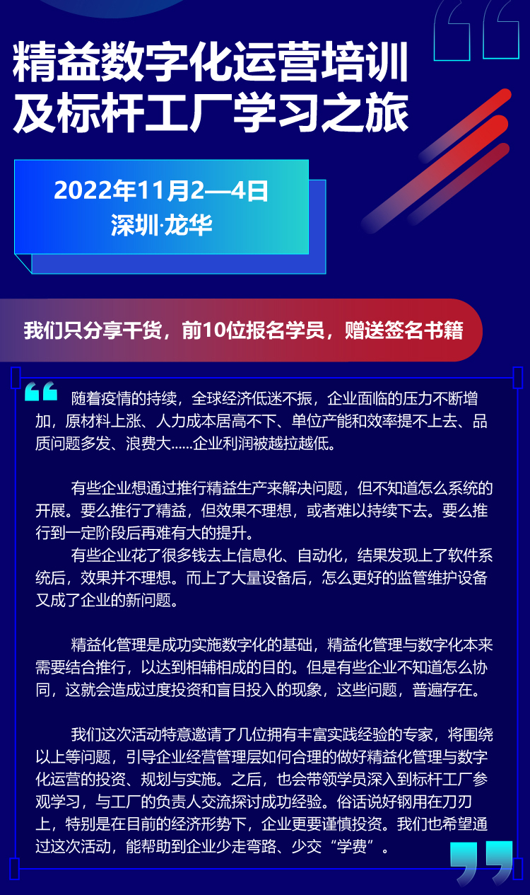 精益數(shù)字化運營培訓(xùn)及標桿工廠學(xué)習之旅火熱報名中!