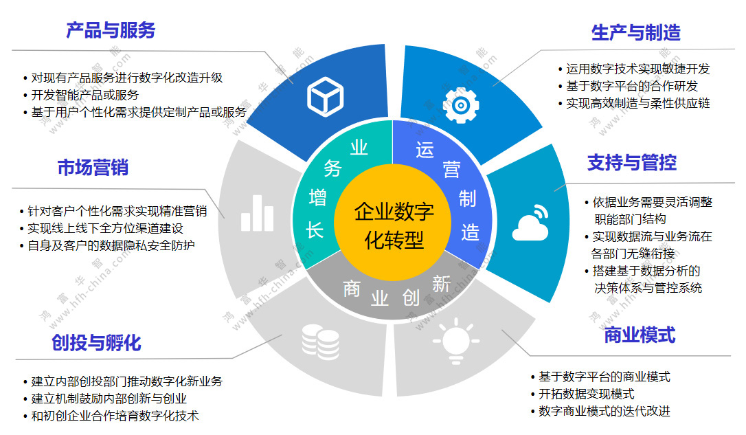 數字化轉型常被形容為“一把手工程”,必須從領導層開始形成從上至下的重視,驅動企業文化的變革。同時,企業需要重新梳理流程和管理,這也是企業中面臨最大的挑戰。運用數字化技術可以加快流程和管理的變革,促進業務的創新。鴻富華為客戶提供企業數字化規劃咨詢(包括數字化戰略頂層設計和實施規劃)、業務與制造流程合理化、關鍵管理系統的開發與實施服務,幫助企業更合理、穩妥的推動數字化升級轉型。